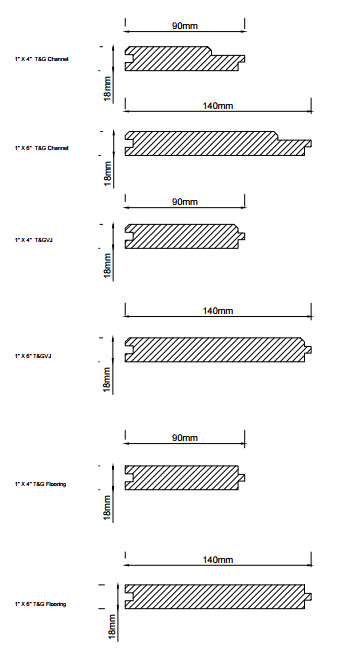 The following table outlines the various dimensions and profiles of lumber